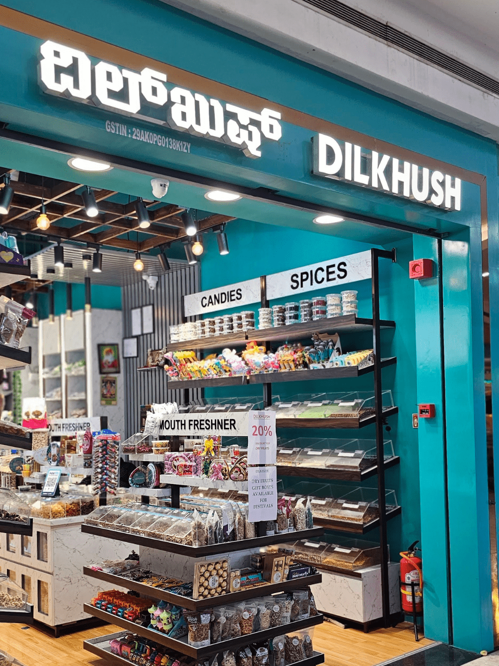 Mr. Sunil Bishnoi embarked on a journey to establish "Dilkhush," a distinguished brand specializing in dry fruits, chocolates, and mouth fresheners. Beginning with a flagship store at Mantri Mall, Bangalore, Mr. Bishnoi sought out top-tier architectural services in Bangalore and discovered Make It Build through Instagram. Entrusting his vision to Make It Build, the project unfolded with meticulous attention to detail.